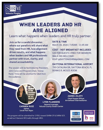 SHRM Greater Orlando, SHRM Volusia Flagler and Space Coast Human Resources Association (SCHRA) make up District 5 of HR Florida. District 5 is doing BIG THINGS as always!