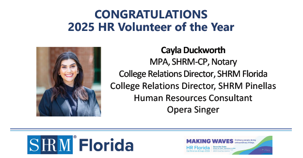 We’re thrilled to announce the winners of the 2025 SHRM Florida Awards, recognizing outstanding achievements and dedication to excellence in human resources across the state. Read More.